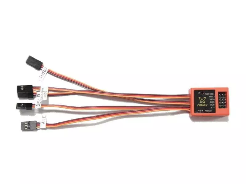 Dieses elektronische Stabilisierungssystem wurde entwickelt, um den Piloten bei Steuerbefehlen zu unterstützen, jedoch nicht zu stören. Das Reflex-System arbeitet sowohl mit PPM- als auch mit SBUS-Eingängen und ist mit allen gängigen Fersteuerungssystemen kompatibel. Wird das Reflex-System an einem 3-Kanal-Schalter belegt kann zwischen 3 verschiedenen Modi gewählt werden. Stabilized Modus: Beim Loslassen der Steuerknüppel wird das Modell automatisch in eine neutrale Flugstellung gebracht, was gerade Einsteigern und ungeübten Piloten eine Menge Sicherheit in brenzligen Situationen bietet. Optimized Modus: Das Kreiselsystem des Reflex-Systems wirkt äusserlichen Einflüssen wie Windböen oder Seitenwind entgegen und hält das Modell präzise in stabiler Lage. Aus: Das Reflex System lässt sich vollständig ausschalten. Das FMS Reflex System ist speziell für dieses Flugmodell eingestellt. Es sind keine weiteren Programmierungen erforderlich, lediglich der Einbau und Anschluss im Modell ist noch durchzuführen. Das FMS Reflex System lässt sich mit allen Empfängern mit mindestens 4 Kanälen verbinden.