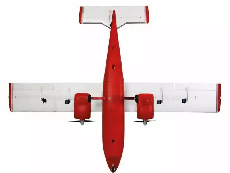 Der geräumige Akkuschacht nimmt 3S-Akkus mit 2200 – 5000 mAh auf, womit man einen breiten Bereich betr. Flugleistung und -dauer hat. Die glasklare Frontscheibe lässt den Einbau eines FPV-Systems zu, um den Flugspass weiter zu erhöhen. Mit der hellroten Lackierung ist das Modell in der Luft ausgezeichnet zu erkennen.