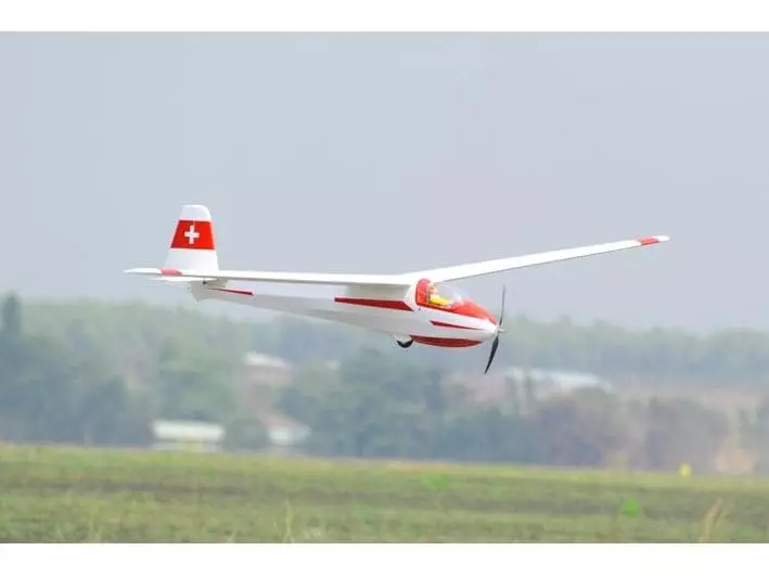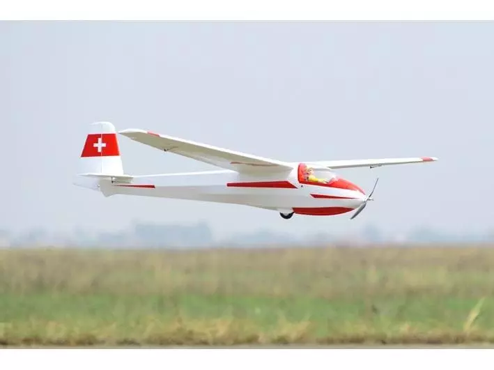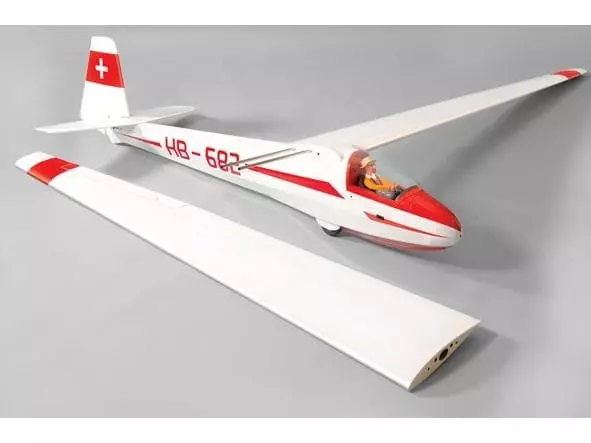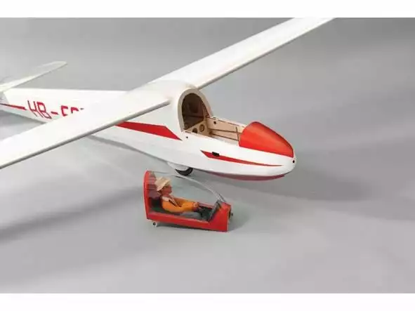 Die neue K-8B 3.5 m ist jetzt ausbaubar zum Elektrosegler. Alle benötigten Teile für den Einbau eines Elektromotors sind im Lieferumfang enthalten. Die K-8B von dem bekannten Hersteller Phoenix Model ist ein schöner Segelflieger mit 3.5 m Spannweite in klassischem Design wie er auf vielen Segelflugplätzen der manntragenden Zunft anzutreffen ist.Die Version mit 3.5 m Spannweite ist der kleine Bruder der 6 Meter Variante. Da auch bei der «kleinen» Maschine die Tragfläche zweiteilig ist, ist das Modell recht handlich und gut zu transportieren. Ein Modell was im Schleppbetrieb viel Spass macht, da auch die Schleppmaschinen keine Riesenmasse haben müssen und damit alles deutlich alltagstauglicher ist. Das Flugbild dieser K8-B ist wunderschön und erinnert sehr an manntragende Flugzeuge. Das Modell ist in hervorragender Qualität in Holz gebaut und fertig mit original Oracoverfolie bespannt. Das Cockpit ist ausgebaut mit einer Pilotenfigur und vielen Rundintrumenten. Ausserdem ist das Modell bereits mit einer Schleppkupplung ausgestattet.