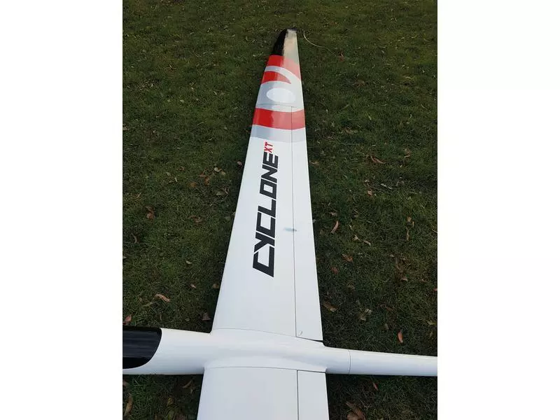 Der CYCLONE XT ist die konsequente Weiterentwicklung seines Vorgängers CYCLONE. Mit sagenhaften 6.20m Spannweite ist er damit der Gigant am Elektrosegler Himmel! Der Beiname XT steht hier für „Extended“. Das Modell verfügt über einen lackierten GFK Rumpf und zwei 2-teiligen Tragflächen mit Abachi-Beplankung und GfK Unterlage. Hauptmerkmale des neuen Cyclone XT. Die Kabinenhaubenverriegelung wurde wie bei Grossmodellseglern üblich nach hinten unter die Flächen-/Rumpfanformung gelegt.